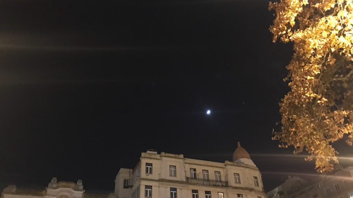 E de repente lembro-me da minha Lua. Há muito tempo que não a via. E ter perdido o autocarro para casa hoje permitiu-me vê-la e recordar que ela está lá sempre para me ouvir e sentir. E sei que não está só para mim. Quem sabe se não está também disponível para enviar o que trago comigo e guardo cá dentro a quem eu gostava de entregar tudo isto.