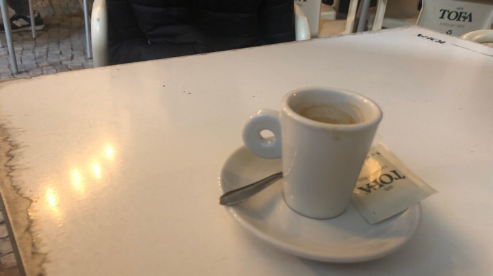 Está dada a alta. Saímos a tempo de apanhar o autocarro das 14h45 até Almada onde, depois de uma longa espera, apanhámos o autocarro para casa. Claro que antes de ir para casa tive que ir à esplanada do costume. O tão desejado café ia ser bebido ali. E foi! Se me soube bem? Prefiro a qualidade Nespresso que tenho em barda em casa à espera de nova máquina. Mas terei que continuar a aguardar. Bebe-se café no sítio do costume.
