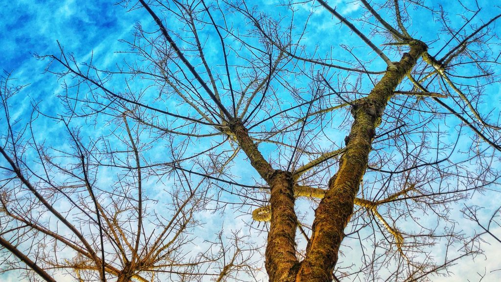 Estágio concluído nestes 31 dias de três a seis meses de duração, acho que já posso dizer que estou pronta para o resto do ano. É sempre um dia de cada vez, claro que sim, para mim e para as árvores despidas pelo Inverno que mantêm a rota dos seus muitos ramos nus em direcção ao céu. Ramos nus que desenham o céu quando olho para cima, com riscos que lembram cicatrizes dos caminhos já percorridos ao mesmo tempo que parecem trajectos delineados num mapa geral com todas as possíveis opções de escolha para chegar não sei muito bem onde. Mas, e lembrei-me de repente, o destino ou meta final não é o mais importante. O caminho percorrido, esse sim!, é o que faz toda a diferença. Seja pela rota levada, pelas pessoas com quem nos cruzamos, pelas experiências vividas. Ou o que for que componha essa viagem nesse caminho que é o de cada um.