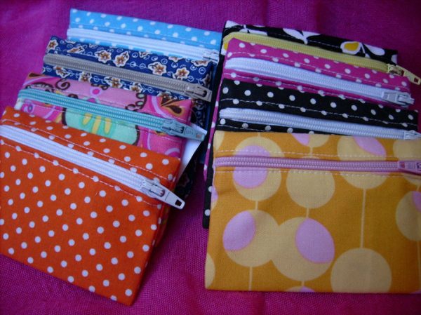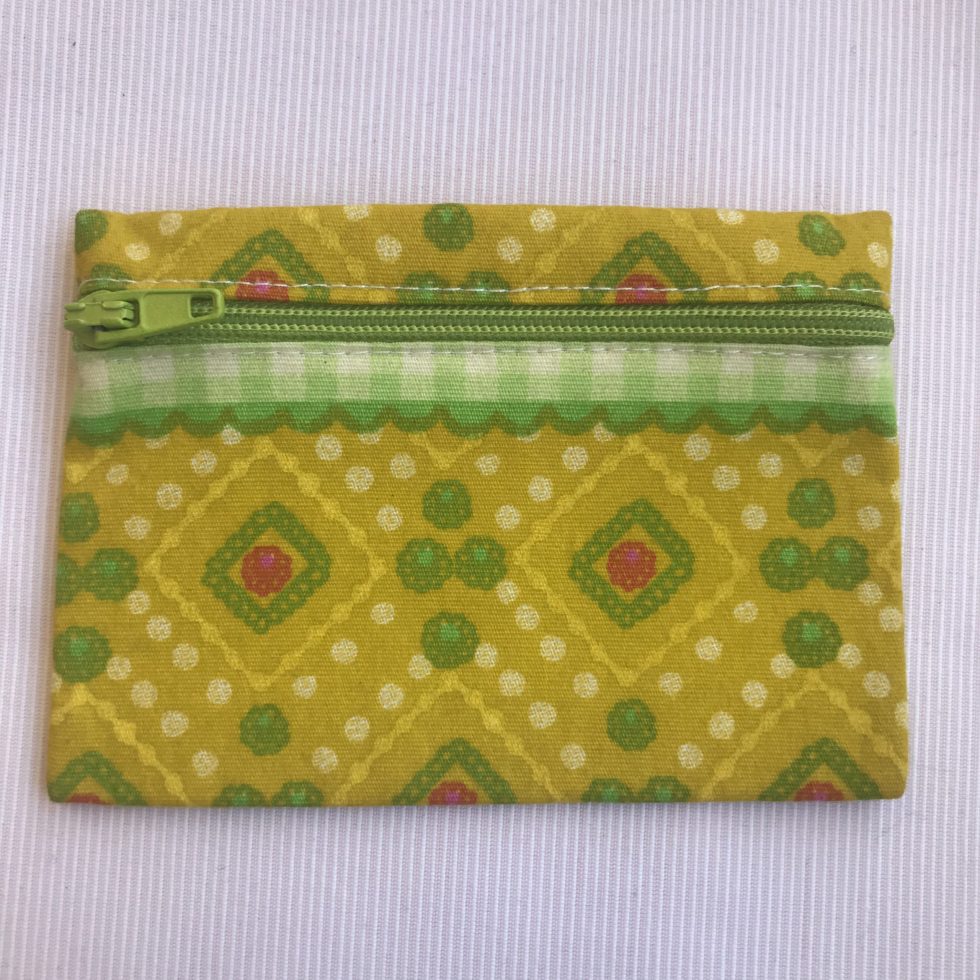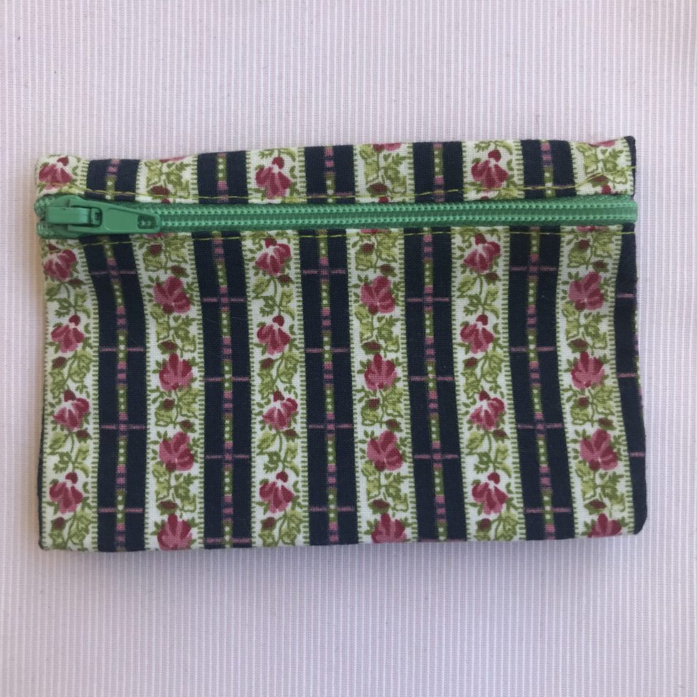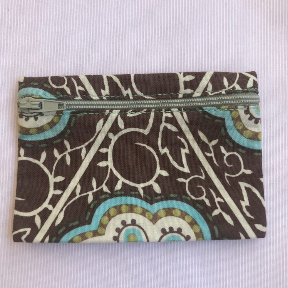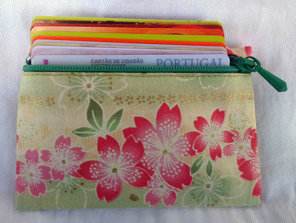 Bolsa rectangular pequena para cartões e moedas com fecho éclair.