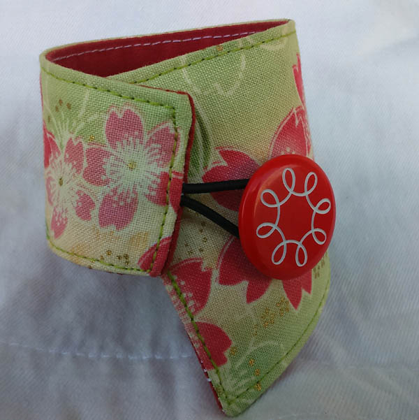 Pulseira/punho em tecido 100% algodão com padrão floral de inspiração japonesa.